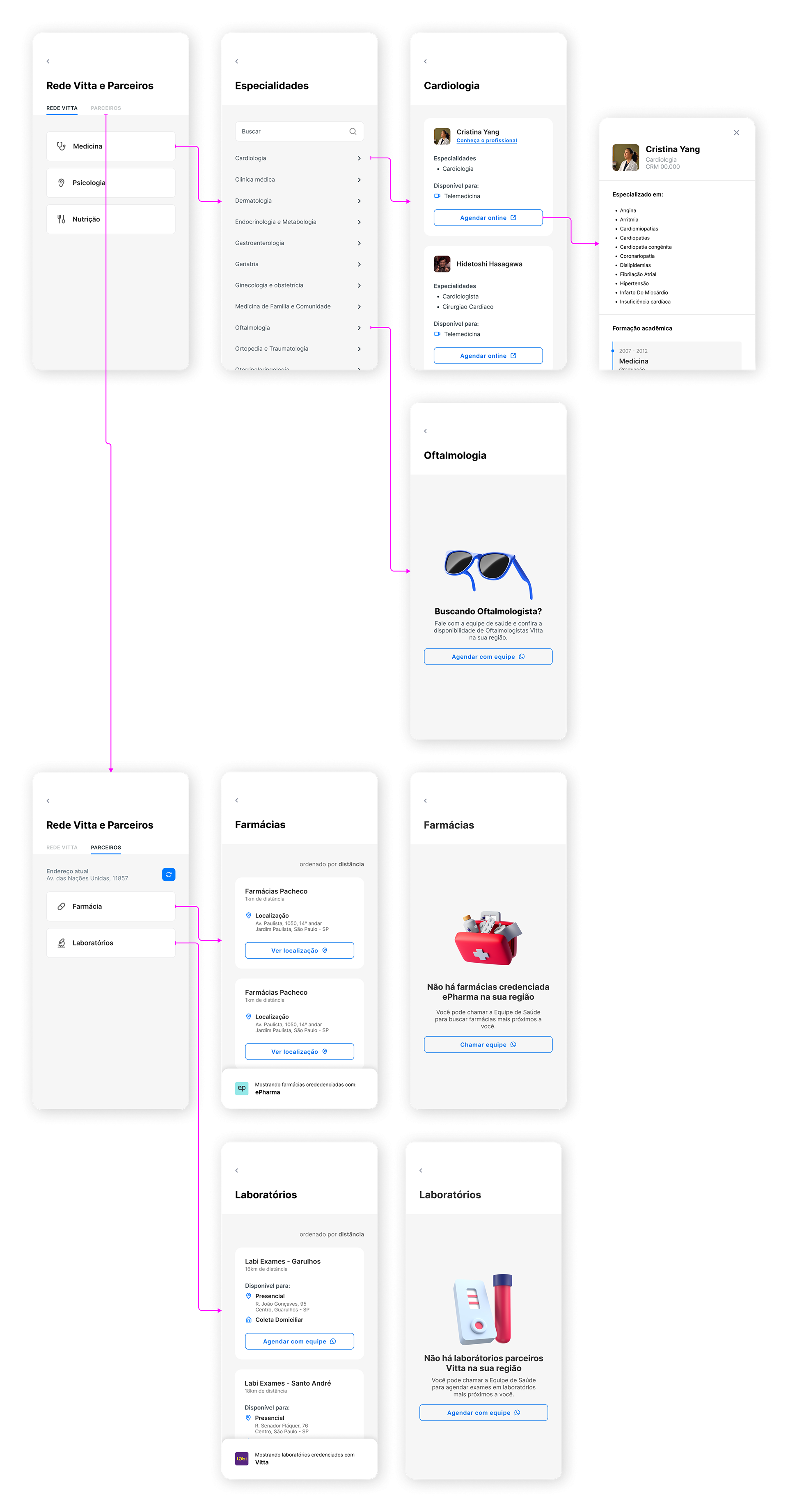 Os usuários não tinham visibilidade da rede médica da Vitta, o que tornava difícil encontrar e escolher profissionais de saúde com base em especialidade, credenciais e disponibilidade.